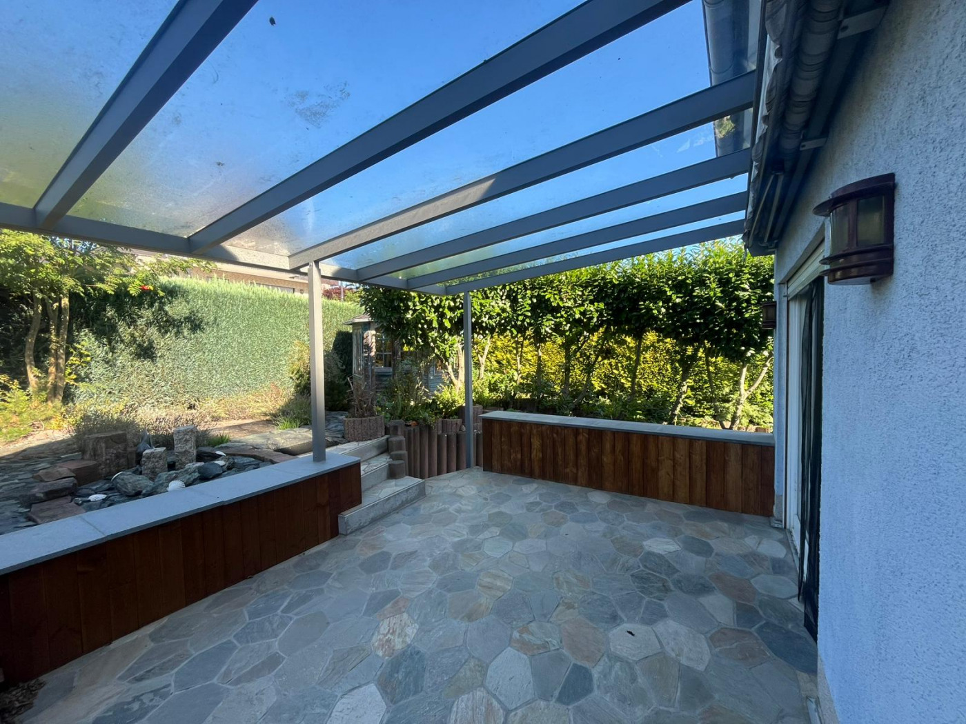 Das Erdgeschoss, welches aufgrund der Hanglage gleichzeitig den Kellerbereich darstellt, verfügt über zwei helle Wohnräume, die derzeit als Büros genutzt werden. Ergänzt wird diese Ebene durch einen Abstellraum, sowie eine Waschküche mit angrenzendem Heizungsraum und einem modernen Duschbad. Eine Etage höher befindet sich der eigentliche Wohnbereich, der mit einem gemütlichen Kaminofen und direktem Zugang zur Terrasse sowie zum liebevoll angelegten Garten mit Gartenhäuschen besticht. Auf dieser Ebene liegen zudem die Küche, ein Schlafzimmer mit einer zusätzlichen großzügigen Terrasse.