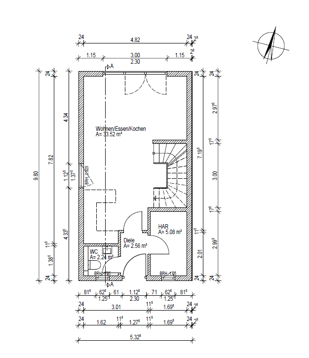 Das Erdgeschoss setzt sich zusammen aus einem großzügigen Wohn- und Esszimmer mit viel Tageslicht, einem Gäste-WC sowie einer gemütlichen Terrasse für entspannte Stunden im Freien. Der Hausanschlussraum mit Heizung und Haustechnik befindet sich ebenfalls im Erdgeschoss.